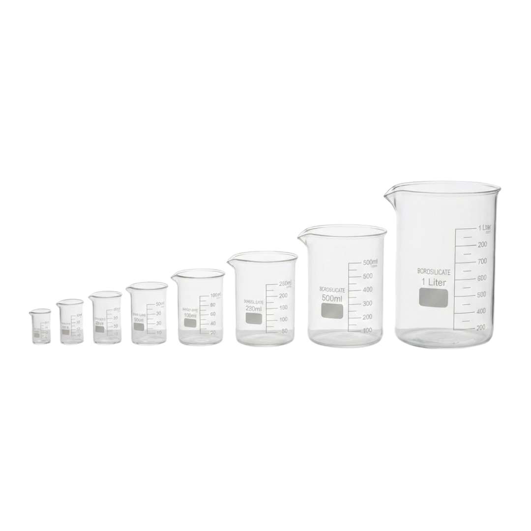 Our beakers are made from premium borosilicate glass, which can withstand high temperatures, thermal shock, and everyday lab use. Available in 8 sizes to suit every batch requirement